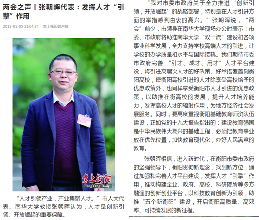 近日,衡阳市“两会”胜利闭幕。我校共有4名市人大代表、26名市政协委员,他们以饱满的政治热情和高度负责的精神参加了此次盛会。