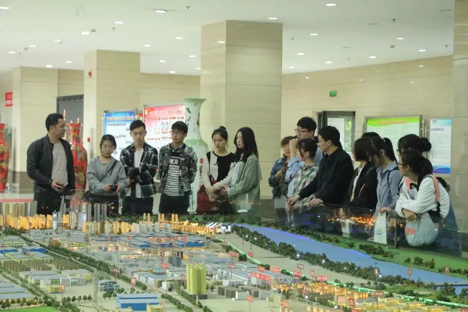 在实地走访调研过程中,合力叉车、华菱汽车、特达液压的负责人分别对其企业文化、发展历程、产品技术研发、市场情况、车间生产线产业布局进行了详细的讲解。在园区机关一楼沙盘处,园区产业发展服务局负责人向全体同学详尽地介绍了园区的产业布局,发展前景以及园区人才需求,并希望更多大学生多到园区来学习实践,加入园区产业建设与工业发展的队伍中来。