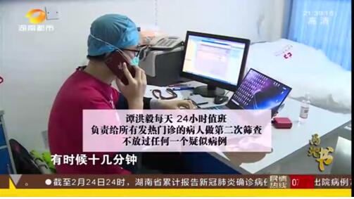 1月19日起,谭洪毅开始参加长沙市中心医院发热门诊及感染二科组建会议,被安排入发热门诊值班一直至2月20日早交班结束。期间先后任感染科二线、发热门诊一线、发热门诊二线班,特别在1月29日至2月20日任发热门诊二线期间,连续工作21天,每天24小时在医院负责发热门诊患者筛查和医院内发热患者会诊,日平均会诊30余次,参与新冠肺炎疑似患者转诊、病情总结上报等诸多工作,日接打电话100余个,每天平均睡眠不到5小时,所带领团队最终筛查确诊病例20余位,占所在雨花区病例数的2/3。作为抗疫前沿“侦察连”,谭洪毅身感责任重大,他与团队严防死守,生怕放走任何疑似病例,不敢有丝毫疏忽和懈怠。