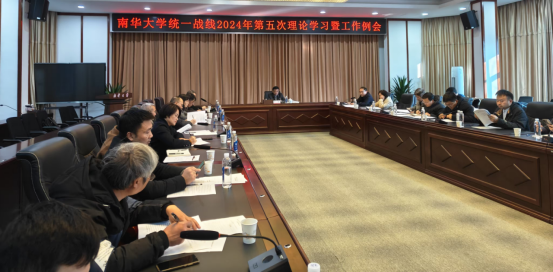 12月31日下午,学校统一战线在第一办公楼视频会议室召开2024年第五次理论学习暨工作例会。会议由校党委委员、副校长、统战部部长于涛主持,各民主党派、统战团体负责人及统战部全体成员参会。