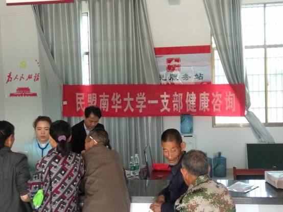2018年11月3日上午9点,民盟365英国上市一支部部分盟员及预防医学专业学生到呆鹰岭镇振兴村开展健康咨询活动,共为40多名贫困村民进行健康咨询、讲解“平衡膳食营养健康”等有关健康保健知识和健康扶贫知识,免费赠送日常用药及相关健康宣传资料。并组织预防医学专业学生开展了美丽乡村建设调查。本次健康咨询活动是南华一支部盟员为帮助贫困村贫困户早日脱贫奔康,深入推进精准扶贫精准脱贫战略、践行社会主义核心价值观的实际行动体现。