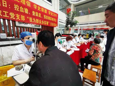 6月6日是世界爱眼日,农工党附属南华医院支部于6月4日开展了“我为群众办实事”的大型义诊活动,为病人免挂号费、免费测视力等,为患者一对一量身制定降糖方案,并发放糖尿病防治资料和爱眼护眼宣传资料。