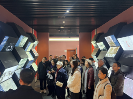 接着,盟员们怀着崇敬的心情,按照指引参观了位于松柏镇的水口山工人运动陈列馆。水口山工人运动纪念馆(始建于1969年)位于水口山铅锌矿区,这座水口山工人运动陈列馆是2021年新落成的,为湖南省爱国主义教育基地、湖南省全民国防教育基地、衡阳爱国主义教育示范基地、衡阳市党性教育基地。大家从现场的一件件文物、一座座雕塑、一张张照片、一个个斗争故事中,学习和回顾了水口山工人运动发生的时代背景和过程,深刻感受了耿飚、蒋先云、毛泽覃、宋乔生等革命先辈为争取自由幸福而敢于牺牲、百折不挠、忘我奉献的伟大工运精神。大家心中涌现出对工人运动的先驱者们和老一辈革命家发自内心的崇敬!多位盟员是第二次来此参观学习,仍旧兴致不减,并向同行者讲述自己的感想,抚今追昔,感慨矿区与纪念馆的发展和巨大变化。