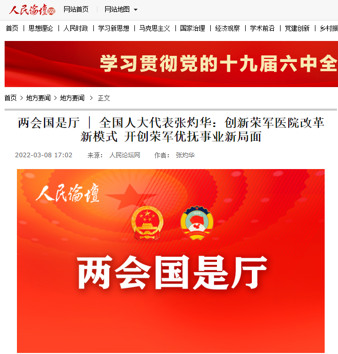 【人民论坛网】两会国是厅 | 全国人大代表张灼华:创新荣军医院改革新模式 开创荣军优抚事业新局面